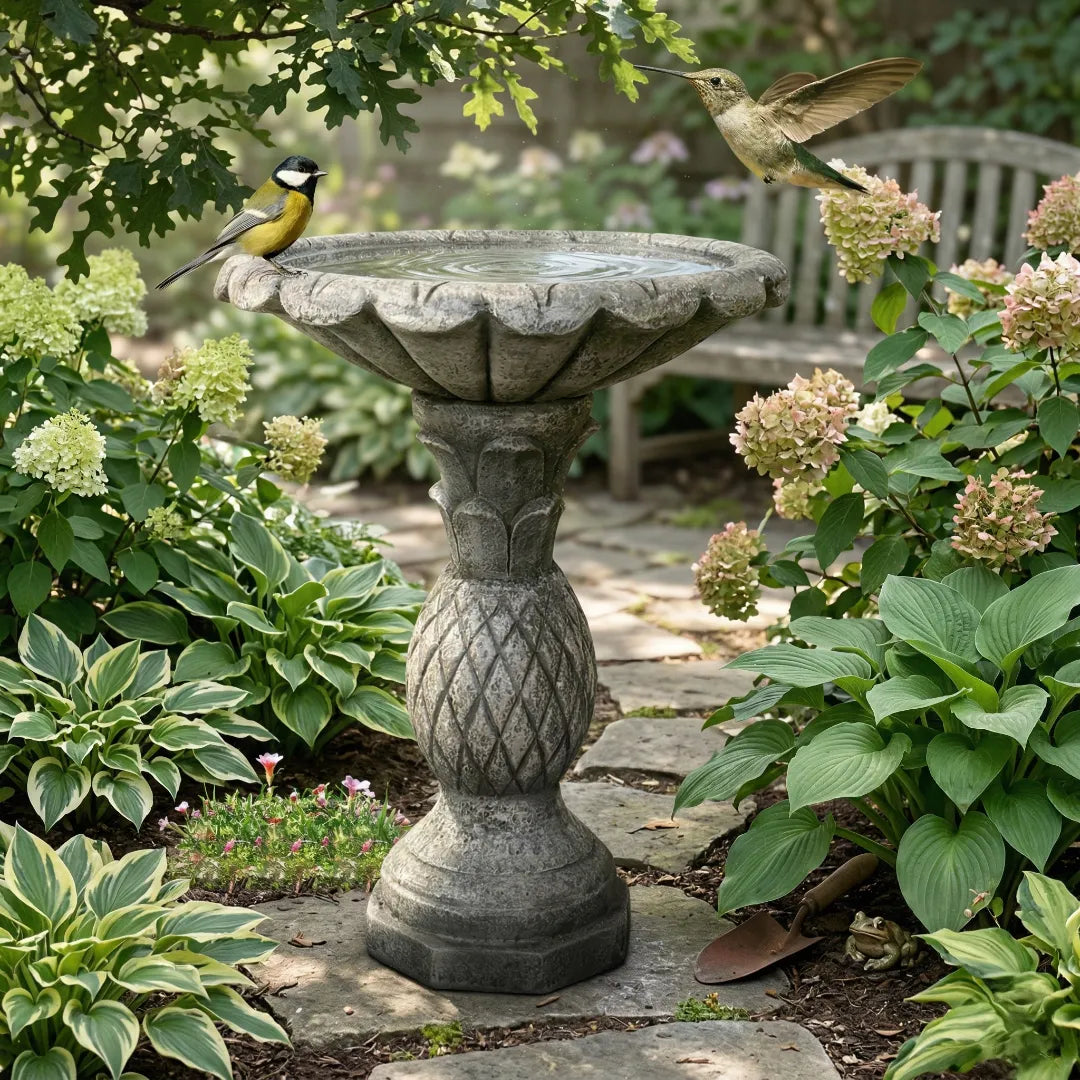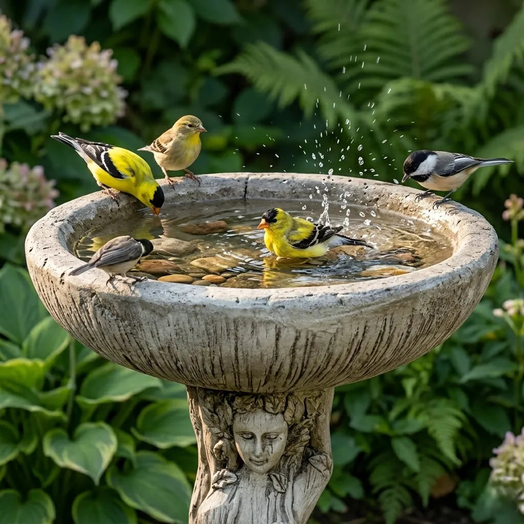 A concrete bird bath is a heavy-duty outdoor water feature made from cement, cast stone, or fiber concrete. It is designed to provide birds with a safe place to drink and bathe while offering superior stability against strong winds and harsh weather.